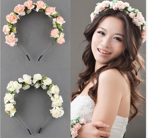 Korean DIY bride wedding tiara flower travel photographs pictorial hair bands Images |